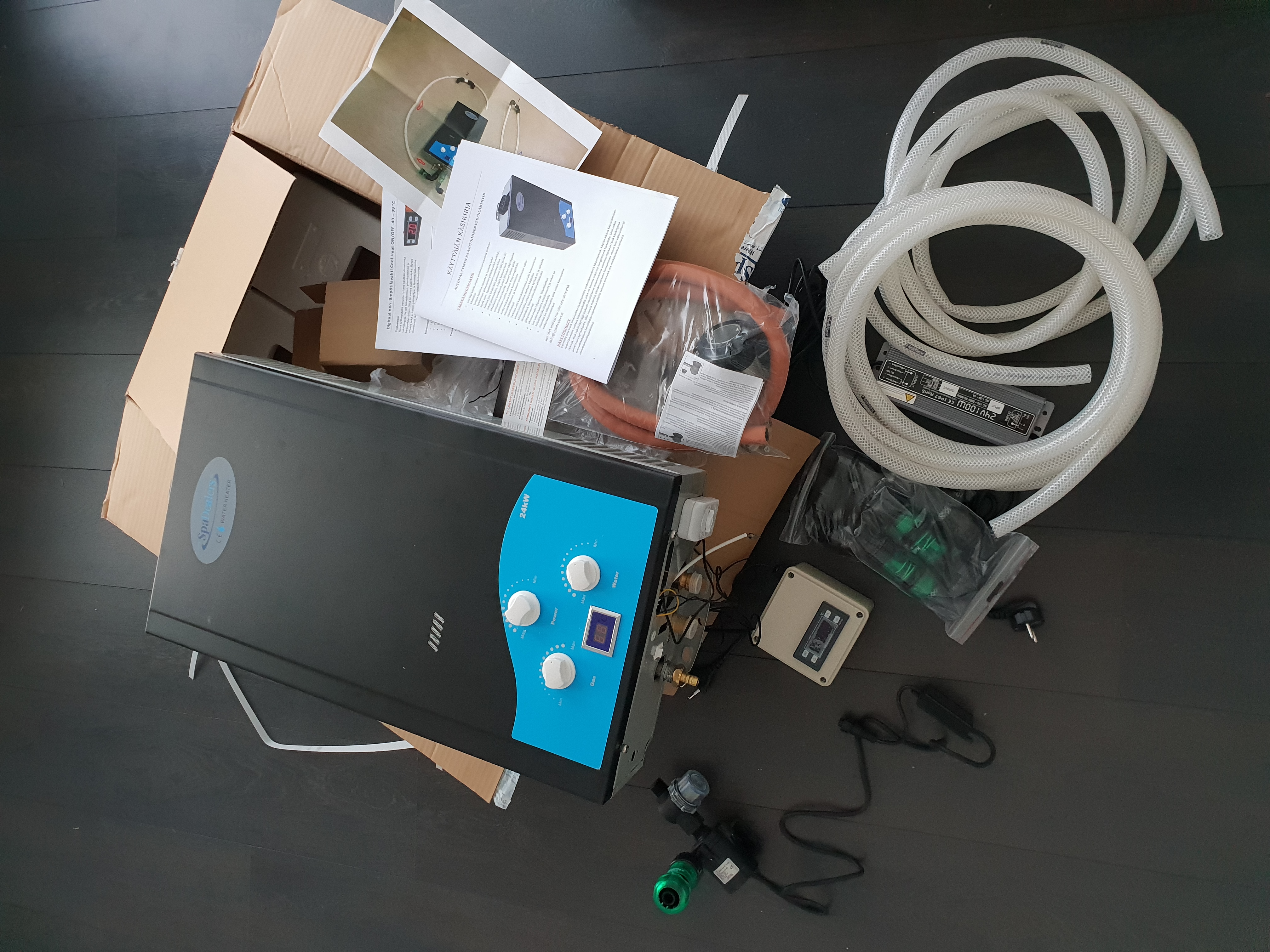 Selasin netistä useita vaihtoehtoja kaasulämmitykseen, hinnat vaihtelivat muutamista satasista tonniin. Päädyin kuitenkin valinnassani SpaDealersin 24 kW:n kaasukaminaan, joka ei ollut edullisimmasta päästä, mutta oli selkeästi tarkoitettu nimenomaan kylpytynnyrin lämmitykseen. Myös myyjä vaikutti olevan asiantunteva ja erikoistunut ulkoaltaisiin.