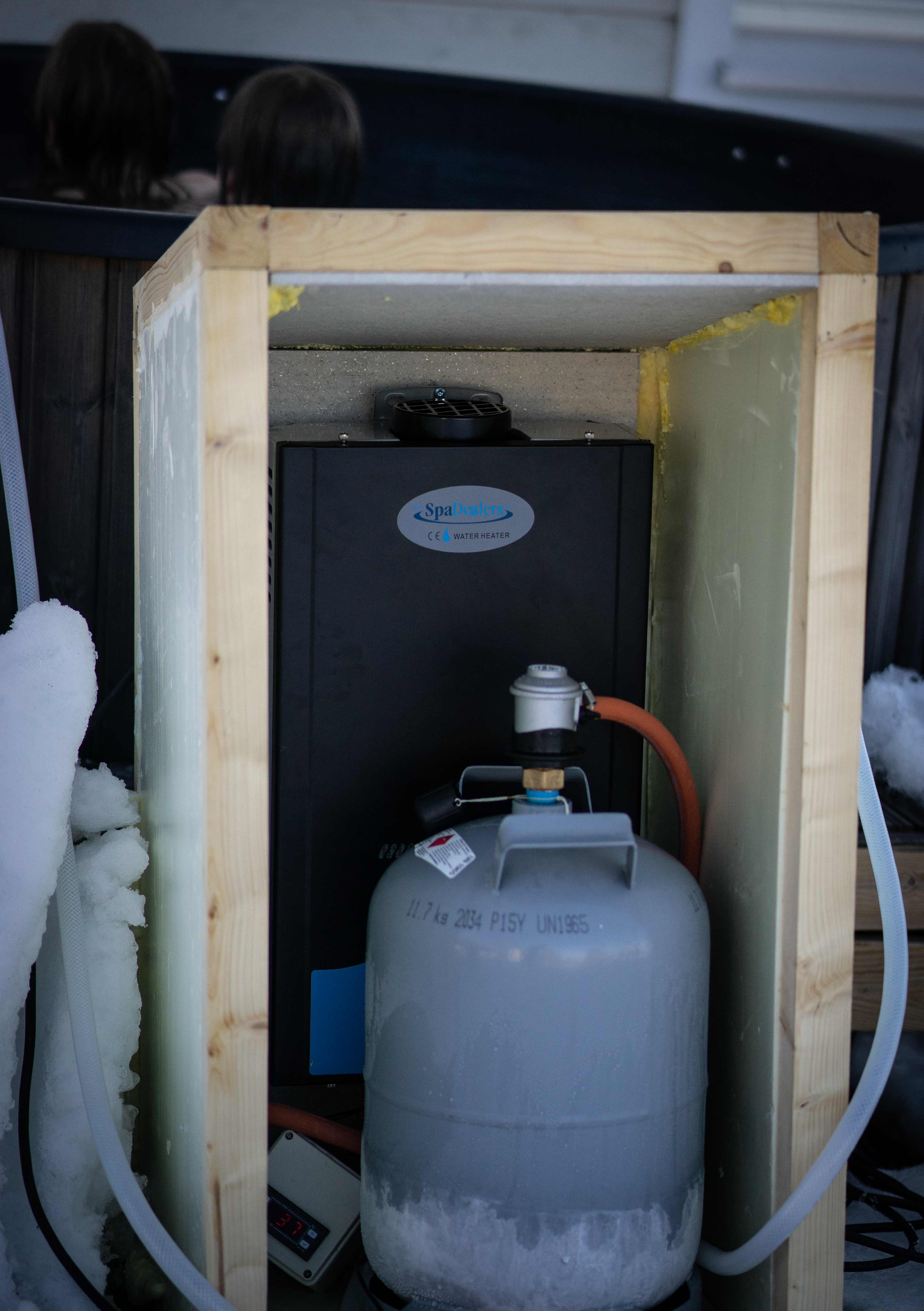 Kun kaiken saa näppärästi paikoilleen ja lämpimät kopat rakenneltua, on kaasu käytännössä (lähes) täysin vaivaton tapa lämmittää ja varsinkin ylläpitää kylpytynnyrin lämpöä. Itse järjestelmän asennus on todella helppo, mutta sen saaminen oikeasti näppäräksi ja toimivaksi vaatii hiukan timpurinhommia (tai valmiin laatikon tilaamista).